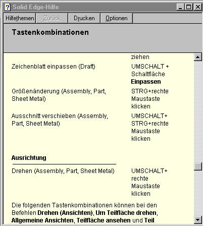 Dieses läßt sich nur mit Hilfe der Tastatur und einigen neuen Tastenkombinationen bewerkstelligen. Diese Tastenkombinationen sind im nachfolgenden Bild aufgeführt.