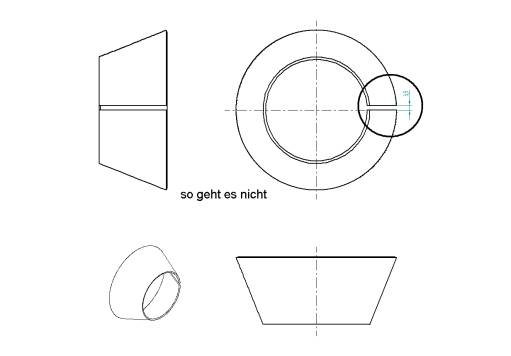 · Es können nur Übergangslappen abgewickelt werden, die aus Ebenen, Teilzylindern und Teilkegeln bestehen.